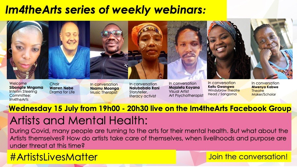 Wednesday 15 July from 19h00 – 20h30 live on the Im4theArts Facebook Group